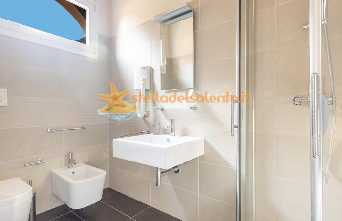 In ogni monolocale vi è inoltre, un ampio bagno privato, set coordinato teli bagno, phon, cassaforte porta valori.