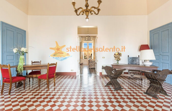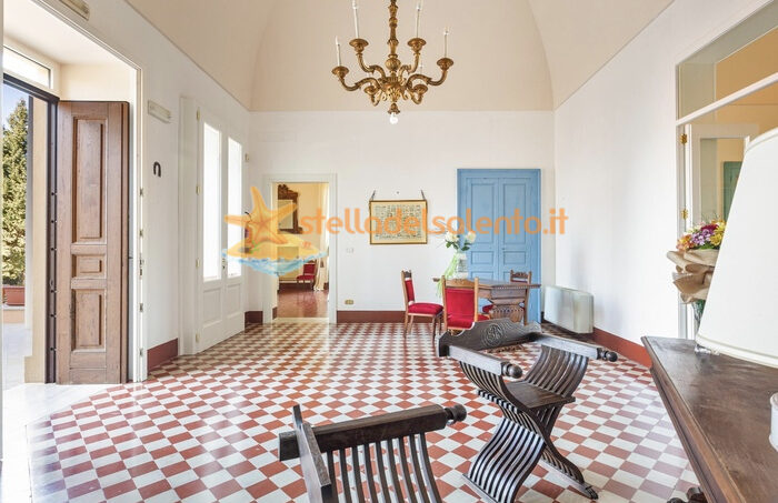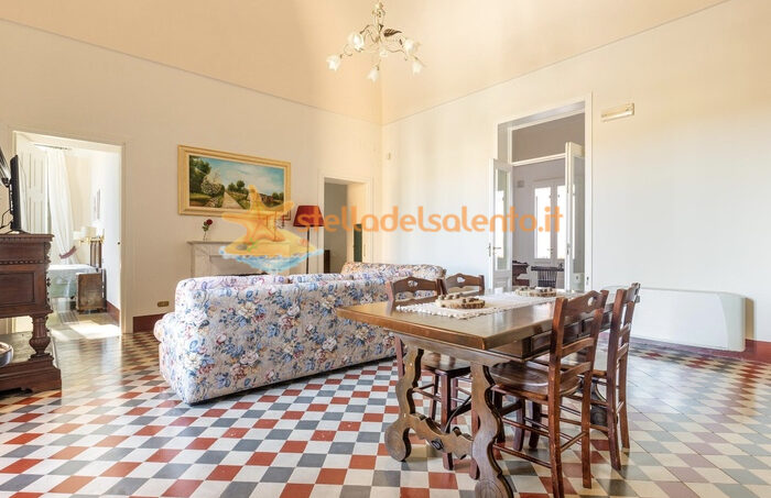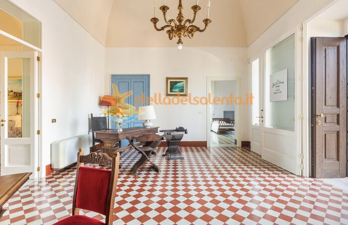 Nella sala d’ingresso, si nota subito il prezioso e antico pavimento in cementine e l’ampiezza e l’altezza delle caratteristiche volte a padiglione tagliate da un piano orizzontale.