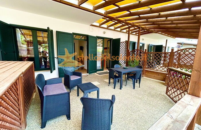 La struttura è composta da una cucina completa ed equipaggiata di tutto, due camere da letto: la prima camera è strutturata da un letto matrimoniale e la seconda da un letto matrimoniale con un lettino singolo. Presente anche anche una zona soggiorno e bagno.