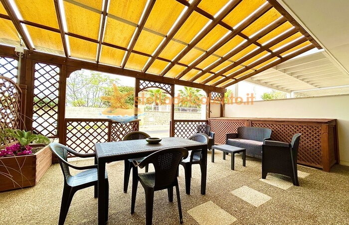 Spostandoci all’esterno, troviamo un grande patio con vari arredamenti da esterno come tavolo per la zona pranzo e cena all’aperto con annesse sedie, tettoia, zona relax.