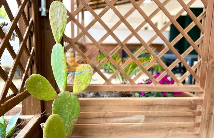 Spostandoci all’esterno, troviamo un grande patio con vari arredamenti da esterno come tavolo per la zona pranzo e cena all’aperto con annesse sedie, tettoia, zona relax.