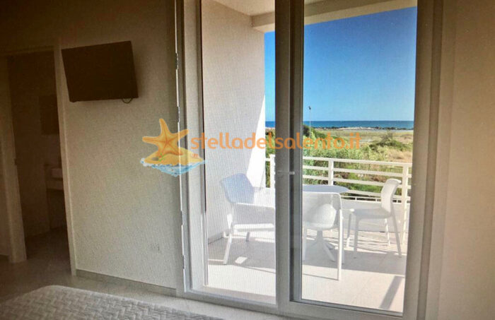 La struttura è composta da una cucina completa ed equipaggiata di tutto, due camere da letto: la prima camera è strutturata da un letto matrimoniale e la seconda da un letto a castello. Presente anche un divano letto nel soggiorno. Vista panoramica stupenda dove il terrazzino regala una vista mare spettacolare. Tutti i servizi principali sono presenti in struttura come lavatrice, aria condizionata, wi-fi, doccia esterna e arredamenti da esterno.