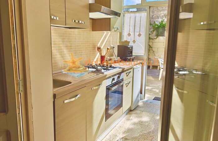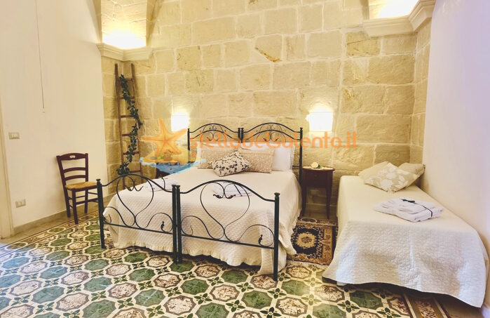 L’ appartamento, finemente ristrutturato ed arredato, si caratterizza per il soffitto con volta a stella in pietra leccese, dispone di ampio soggiorno con cucina economica perfettamente funzionante, angolo cottura con quattro fuochi e forno, due camere da letto, confortevole camera con due comode poltrone letto e due comodi bagni con vasca/doccia.