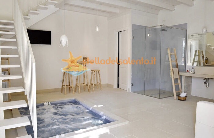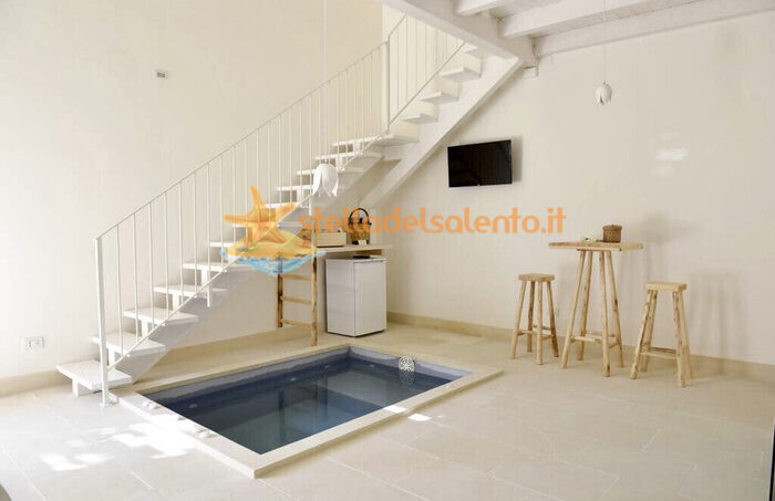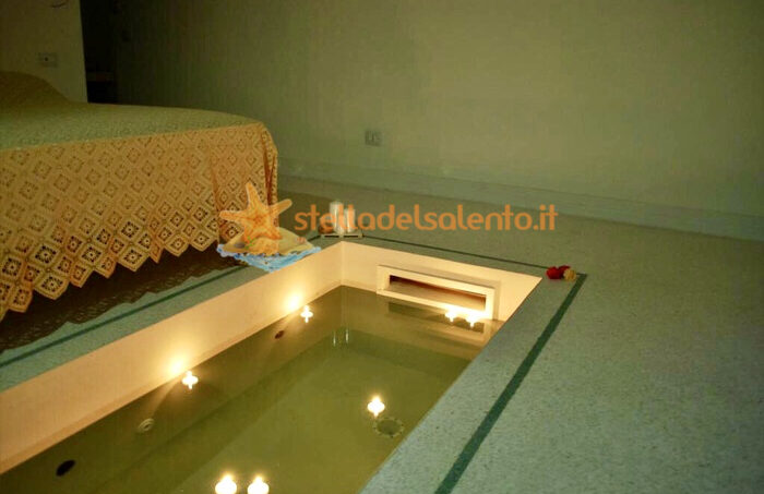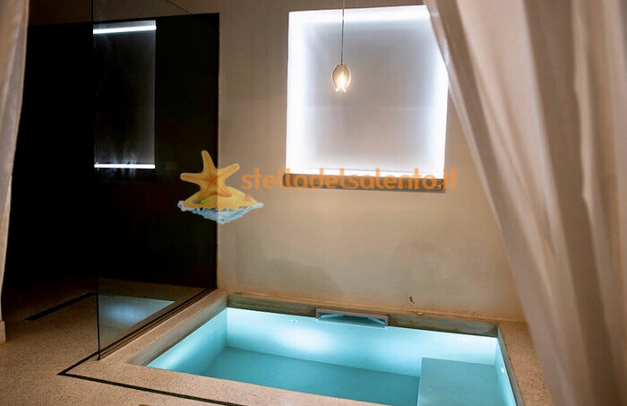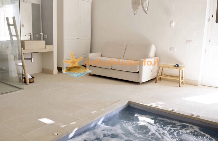 Camere con letto a baldacchino matrimoniale, piccola piscina con idromassaggio, comodo divano letto, pavimento in pietra leccese, accesso indipendente e porzione di patio privata con sdraio e tavolino. Minibar, cassaforte, bagno con doccia, asciugacapelli, connessione wi-fi gratuita, tv, aria condizionata, 50 mq.