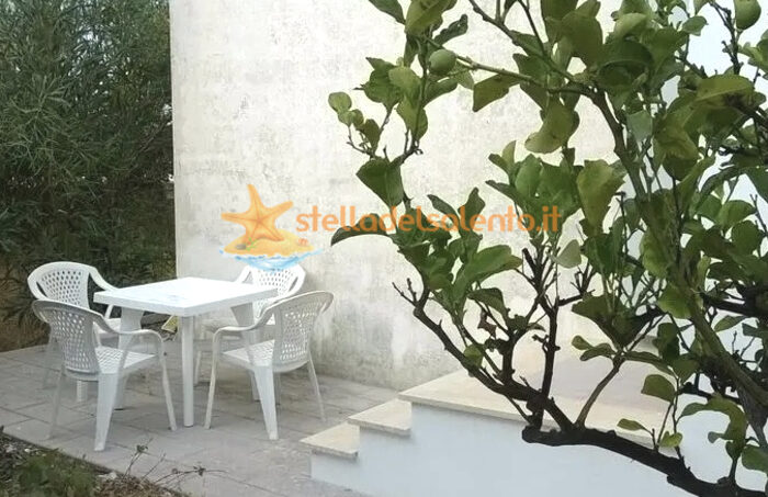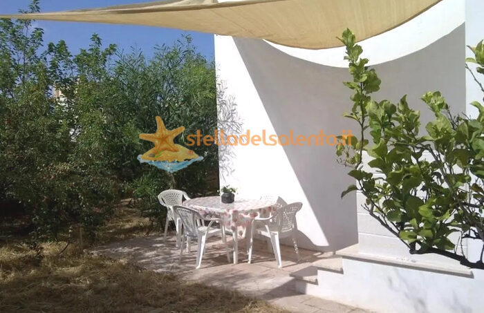 Graziosa villa in stile mediterraneo, circondata da giardino con alberi da frutta, a 100 metri dal mar Jonio, nei pressi di una baia di scogliera con acqua limpidissima nel verde e nella quiete ma a 2,5 km dalle spiagge di Gallipoli (il Pizzo).