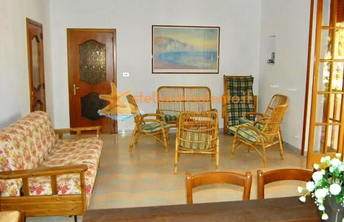 La villa ha una camera da letto matrimoniale, un tinello con angolo cottura e divano letto matrimoniale, un bagno con lavatrice, una veranda posteriore, oltre al giardino alberato. Presente doccia esterna e posto auto interno. Dotata di aria condizionata.